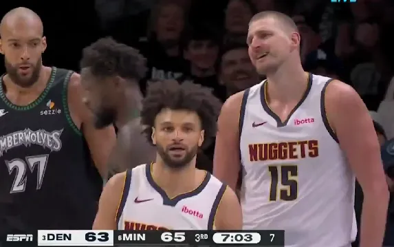 第三节比赛中,戈贝尔篮板后投篮造成约基奇犯规,裁判给到非投篮犯规。